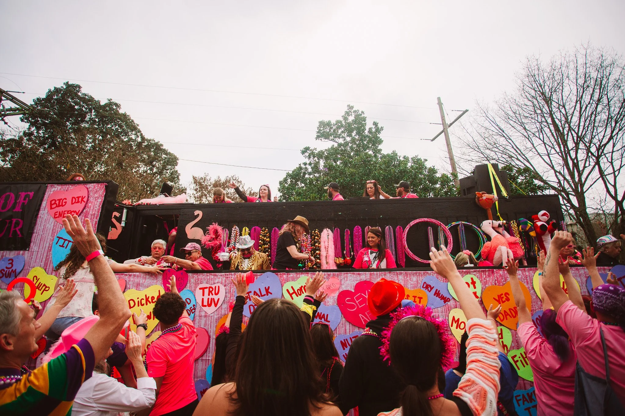 This may be surprising, but instead of the traditional purple, green, and gold that you see with Mardi Gras, in this parade you will see an overload of pink. The theme for the parade changes every year, however the mascot remains the same - flamingos. Don’t be surprised if you see giant ones decorating the neighborhood leading up to the parade. They say that it represents the saying "poor taste is better than no taste at all,” which feels very Dolly coded to me and that is right up my alley.